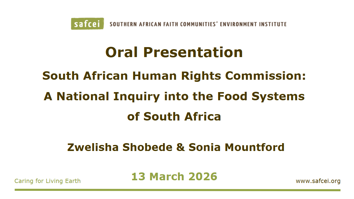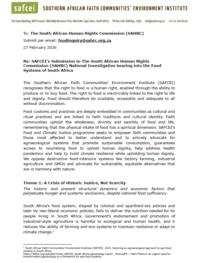Click here to read SAFCEI’s Submission to The South African Human Rights Commission (SAHRC) National Investigative hearing into the Food Systems of S...