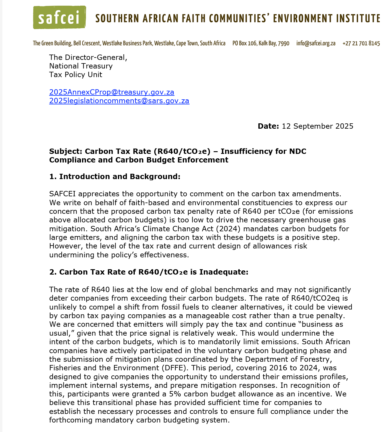 This paper builds on the Southern African Faith Communities’ Environment Institute’s (SAFCEI’s) 2025 Faith, food and the future: Indigenous food syste...